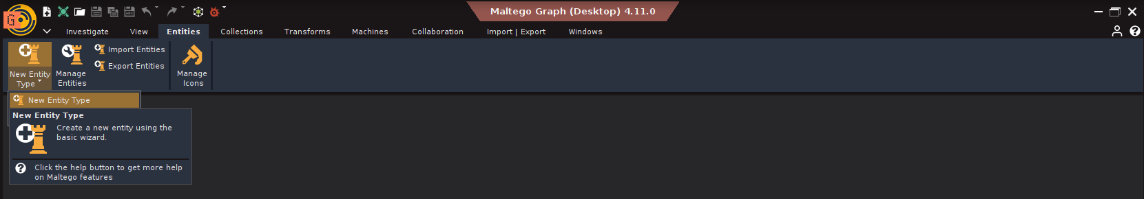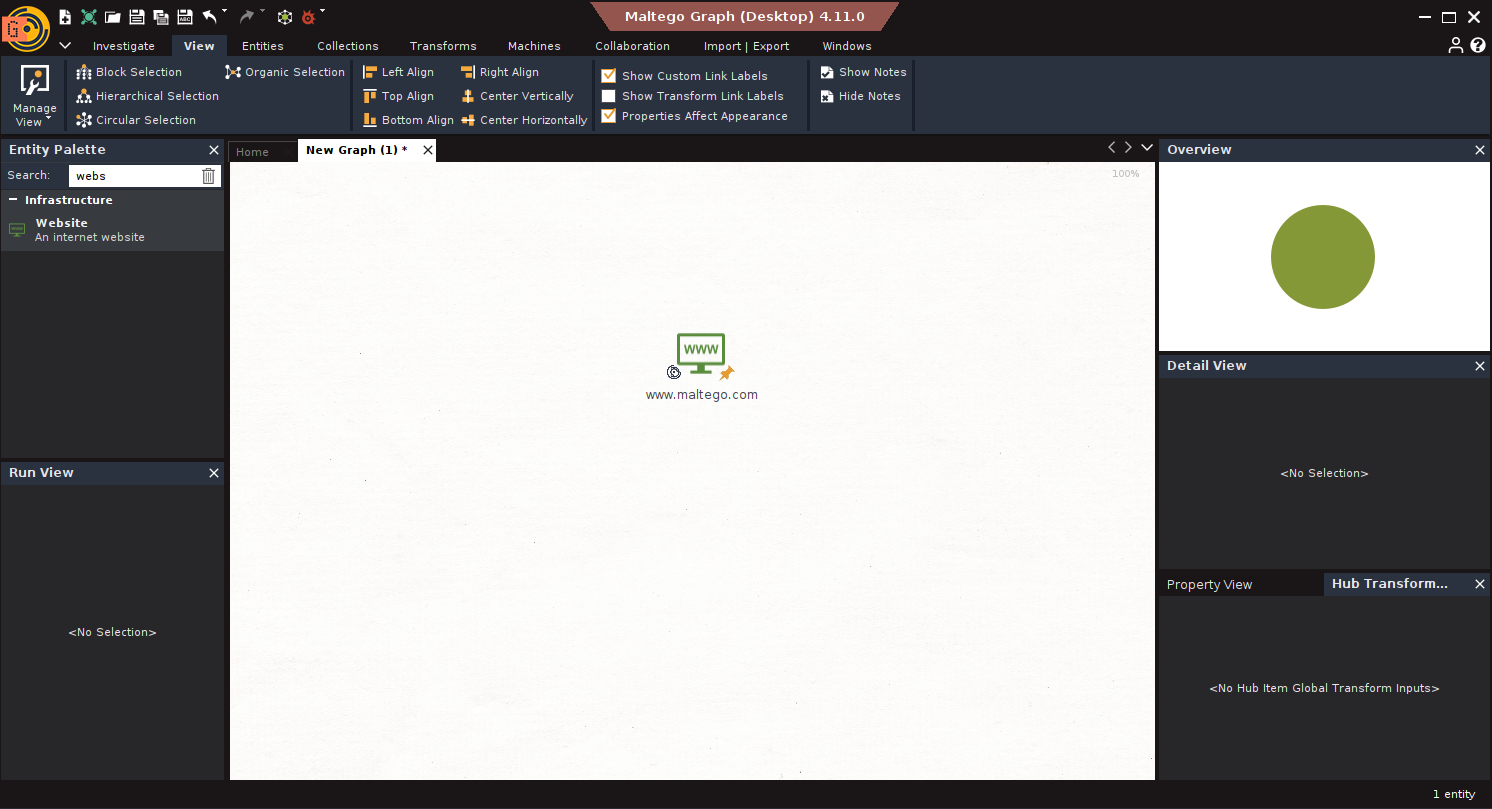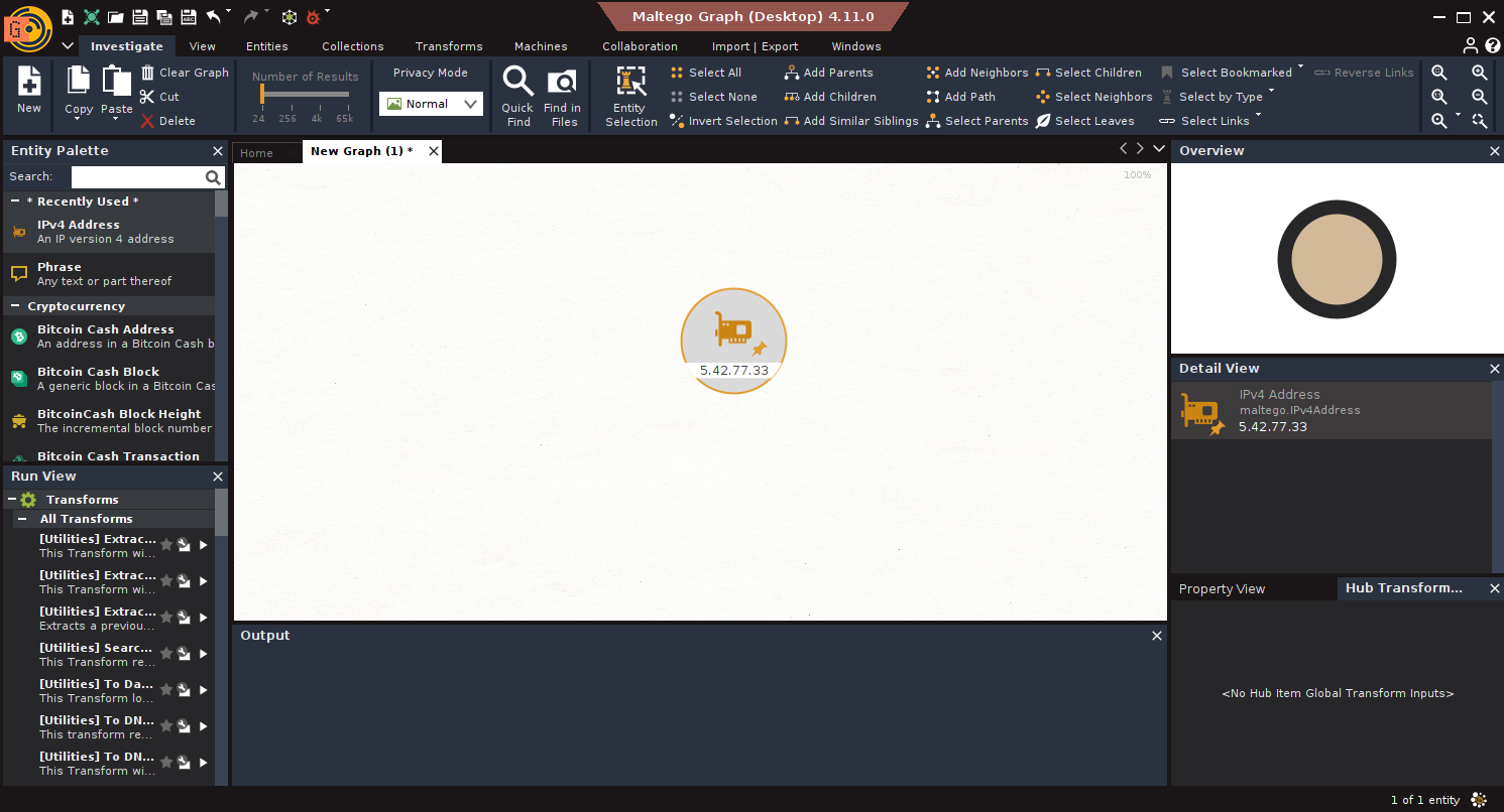 1. Entities: Everything in Maltego begins with an Entity, domain, IP, email, BTC address, etc. Maltego comes with standard ones, and you can create custom entities.