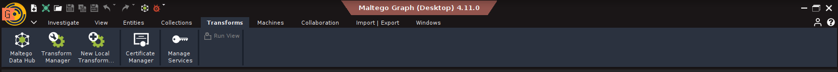 2. Transforms: The verbs. These are the scripts (Python, typically) that take an Entity (or multiple), query a data source (a website API, a database, a local tool), and return new Entities linked to the input. They live locally or on servers (TDS – Transform Distribution Server).