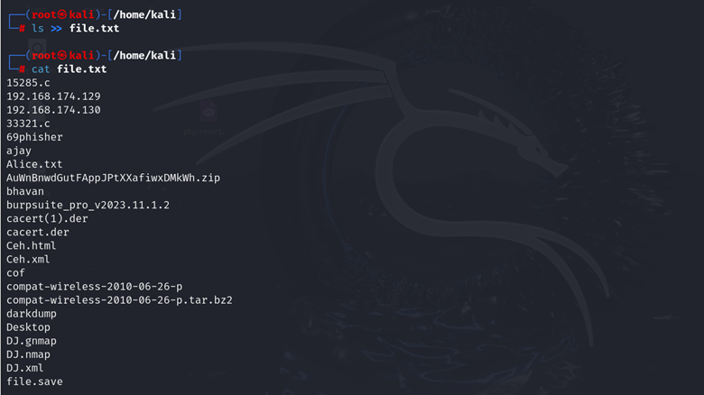 | ls >> output.txt |